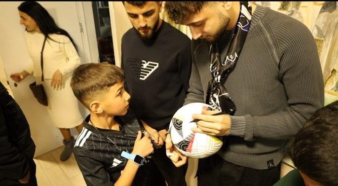 Görüş zamanı uşaqlarla söhbət edən futbolçu onların arzularını dinləyib və onlara xoşbəxt bayram diləyib.