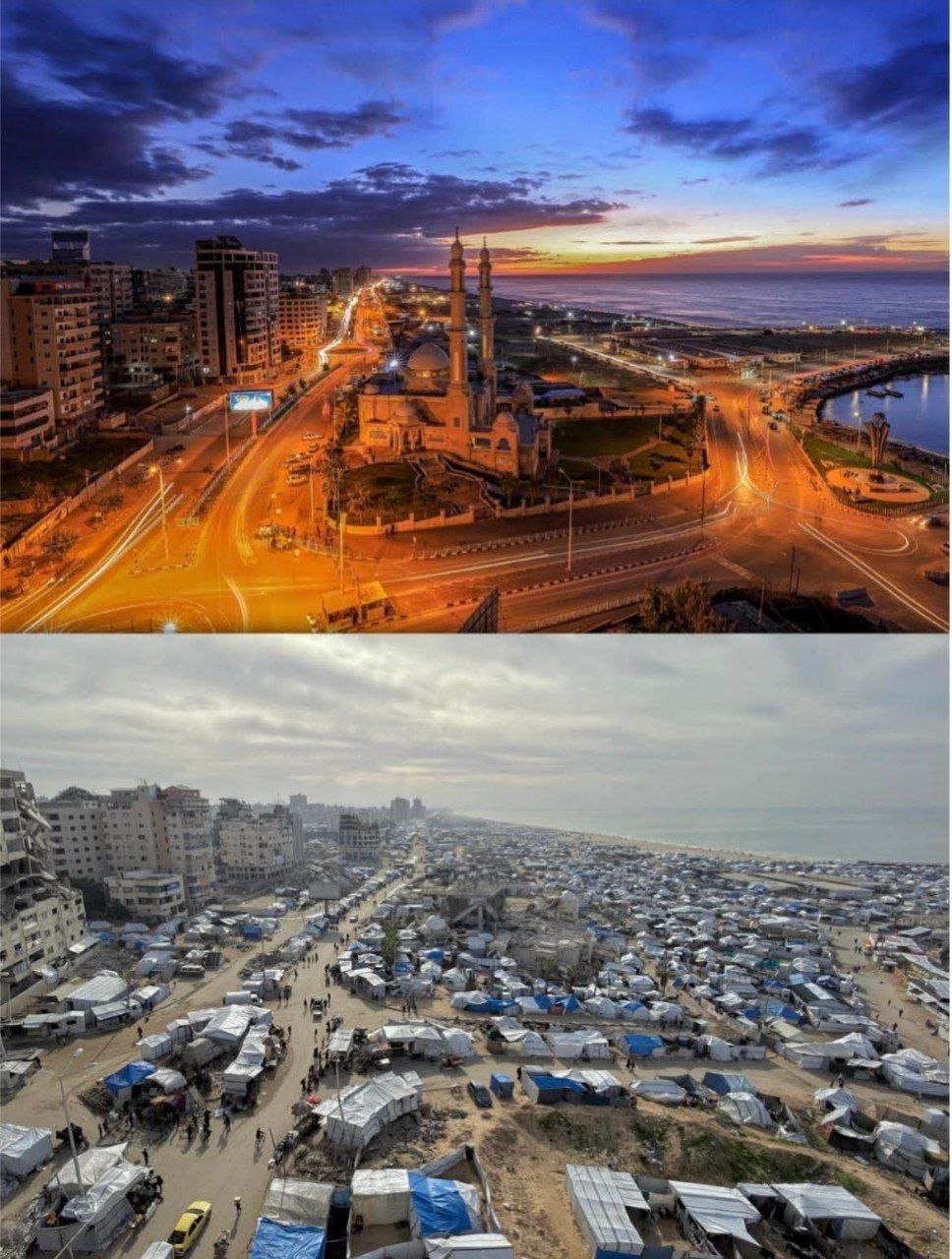Qəzza bölgəsində İsrailin təcavüzündən əvvəl və sonra vəziyyət diqqət çəkir. Yerli əhali və infrastruktura ciddi ziyan dəyib. Evlər, yollar və digər sosial obyektlər dağılıb.