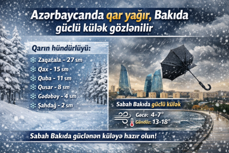 Milli Hidrometeorologiya Xidmətinin məlumatına görə, qarın hündürlüyü Zaqatalada 27 sm, Qaxda 15 sm, Qubada 11 sm, Qusarda 8 sm, Gədəbəydə 4 sm, Sədərəkdə 3 sm, Şahdağ və Daşkəsəndə 2 sm, Xaltan və Şəkidə 1 sm-dir.