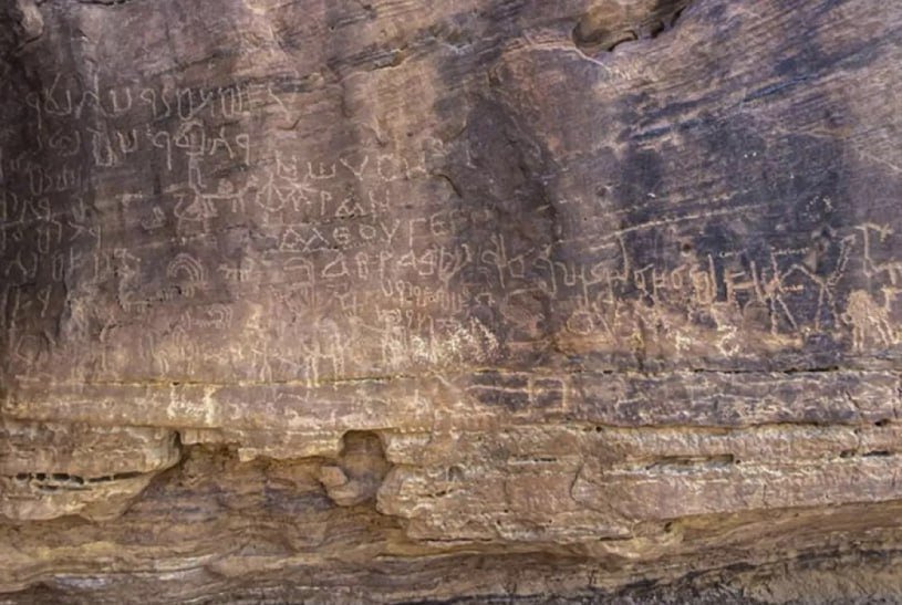 Məlumata görə, Umm-İrak yaylasının şərq yamacında yerləşən və uzunluğu 100 metrdən artıq olan qaya örtüyü oyma və çəkilmiş təsvirlərlə zəngindir. Burada heyvan fiqurları, ov səhnələri, silahlı insan təsvirləri, müxtəlif simvollar, eləcə də ərəb və nabati dillərində yazılar yer alır.